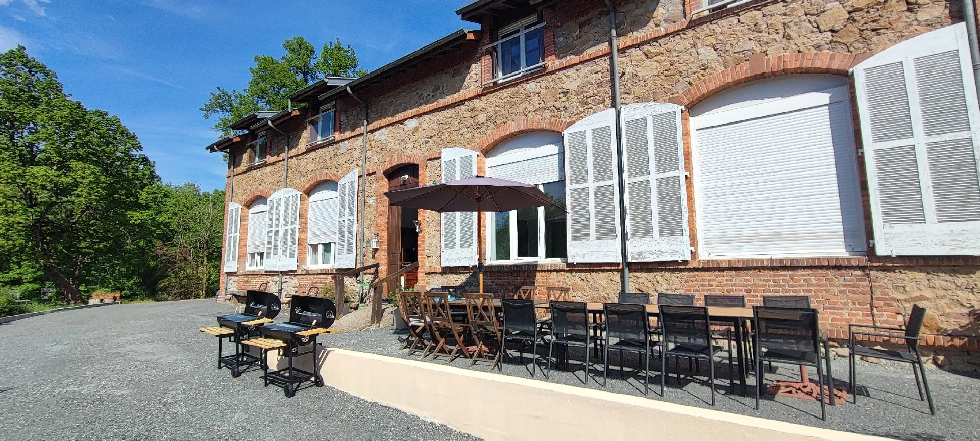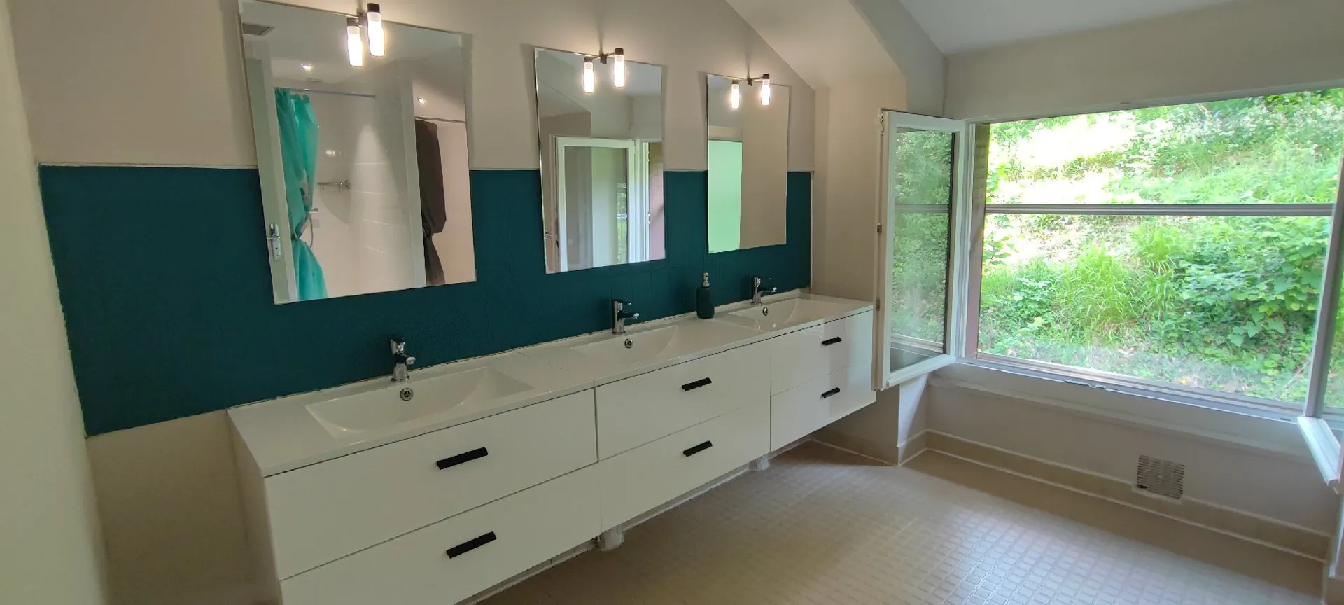 Vous disposerez de 11 chambres, 7 salles de bains , 8 WC ,une grande de salle a manger toute équipée pour 40pers ( Tables de ferme,chaises,vaisselles,verres…)