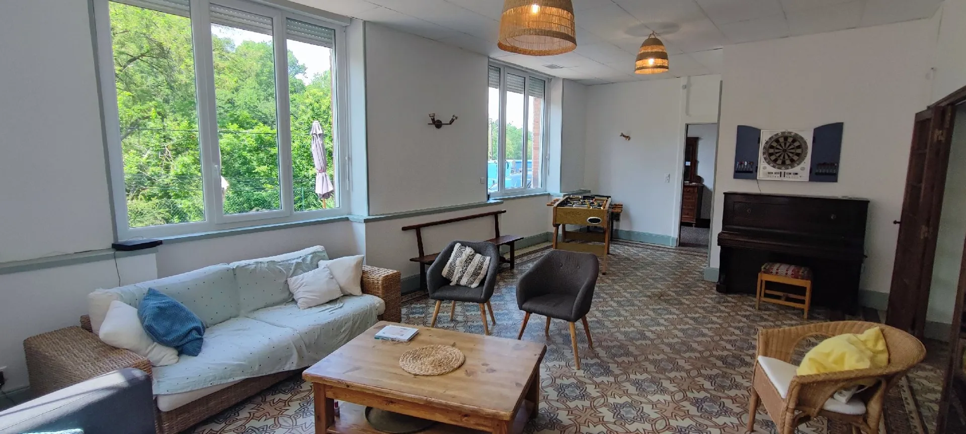 Un grand salon détente ,grand écran TV ,Babyfoot ,jeu de fléchettes Electronique, jeux de sociétés ,bibliothèque….